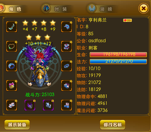 当玩家达到全身12星装备的时候,角色属性中的“12星”图标就会点亮,生命上限、法力上限、攻击、物防和法防都会全部额外增加15%。