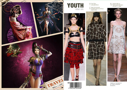 手游《秦美人》此三款美人着装也是在于面料的体现,较少的运用薄纱,油画质感的印花和纯色质感面料,让人眼前一亮,繁琐中凸显其服饰的表现力,以标记图案和明朗的色彩设计为重点,彰显出每个美人的不同性格。