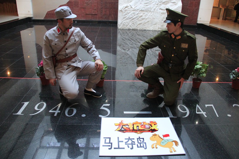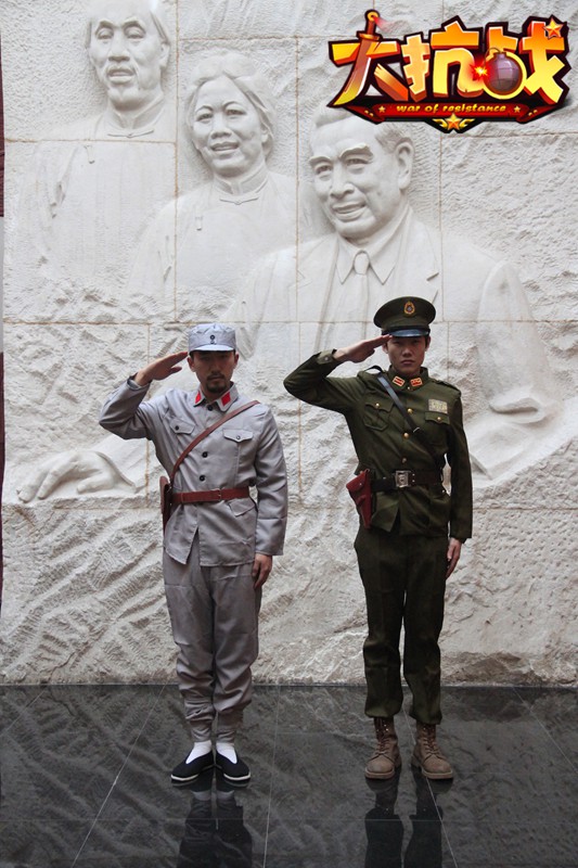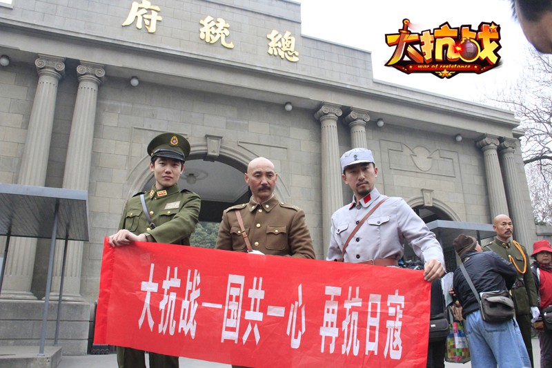 勿忘国耻,永记血仇!国共一心,再抗日寇!2014新年之际,中国第一抗日手游《大抗战》降临南京大屠杀纪念馆,邀请数位热血青年扮演抗战时期国共联军,传神再现国共联合抗日的辉煌历史。