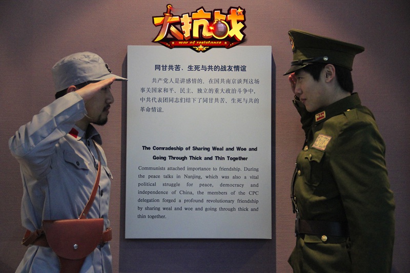 导 读: | 勿忘国耻,永记血仇!国共一心,再抗日寇!2014新年之际,中国第一抗日手游《大抗战》降临南京大屠杀纪念馆,邀请数位热血青年扮演抗战时期国共联军,传神再现国共联合抗日的辉 |