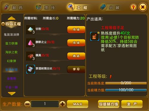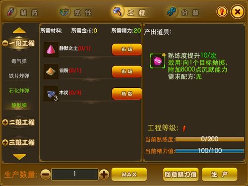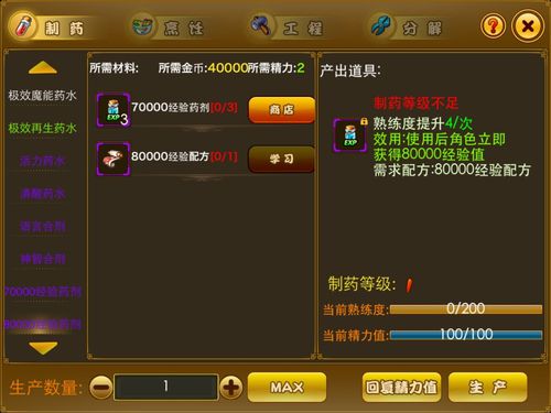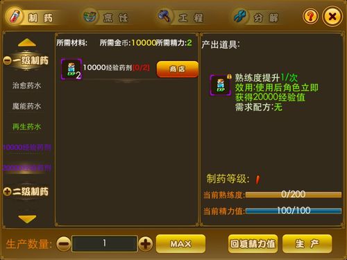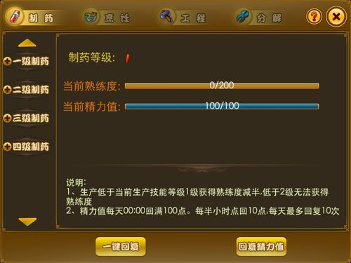 3. 玩家可通过不断生产产品累积熟练度,直至技能等级提升;不同生产品所获得的熟练度是不同的;
