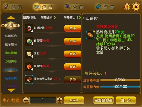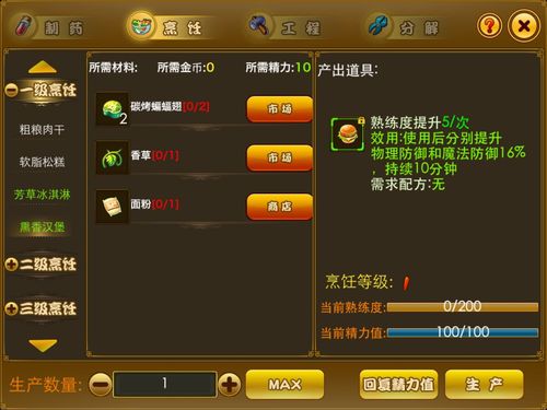 4. 每次生产都会消耗精力值,不用种类和品质的生产品,所需消耗的精力值是不同的;
