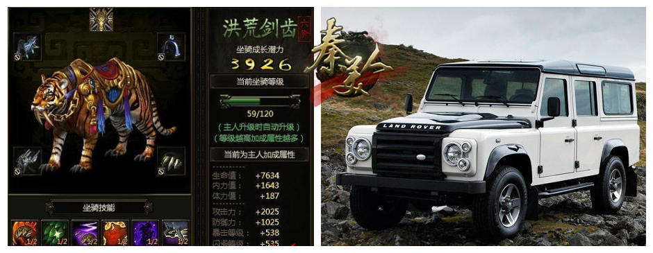 路虎卫士限量版最像手游《秦美人》中的洪荒剑齿,路虎卫士特有的刀削般硬朗的线条和颇具英伦风范的造型,多色的前后车灯组合粗狂方正的车身,很是和谐。玻璃天窗异常通透,采用了切割的合金轮圈,尾部的风格依然有十足的传统越狱车设计,背负式备胎裸露的铰链、螺栓、铆钉都在无言的表露着它的个性,橙色和黑色,白色和黑色形成了强烈的反差,看上去也不失时尚与大气。