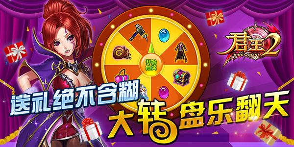 时间停留在2014年的一月,春节也近在咫尺了!佳节来临之前,少不了为亲朋好友准备春节礼物,眼看钱包里屈指可数的软妹币付之东流,这可愁坏了不少友友!也许您也在心里暗自嘀咕,我的礼物呢?不用着急,不管有没有人送您礼物,《君王2》绝对不会忘记您,春节好礼大放送,幸运转盘乐翻天,只要您来《君王2》,超值好礼等您抱回家。