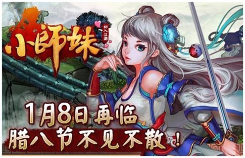 《小师妹》1月8日腊八节火热开测!游戏内容全面升级更新,更有众多线上活动等你参与:四大礼包、冲级竞赛,超级写手活动全部为你开启!更有精彩微信、微博活动震撼来袭!还在犹豫什么?一起动起来吧!