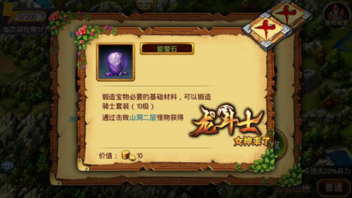 《龙斗士:女神来了》的森林旷野,是第一章地图边境山地的关卡之一。守关小怪并不吝啬,击杀后有几率掉落增加100韧性的碎裂韧性符文,增加100暴击的碎裂狂暴符文还有锻造10级骑士套装必须的紫萤石。另外,紫萤石的宝物介绍上所描述的通过击败山洞二层怪物获得,一般是指能给玩家带来最多声望收益的战斗关卡。