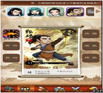 曾获得2012和2013年度许多手游大奖,可谓是一款比较有水准的武侠手游。作为一款卡牌类的游戏,画面的好坏就在于卡牌图片的是否给力。《大掌门》中英雄图片的绘画比较形象,英雄的衣服、颜色和姿势等都可以让人很快的联想到武侠小说中的英雄,比如弯弓射雕的郭靖。但这样的设计,会让玩家感觉是别人在战斗,从而降低玩家与游戏的相融合。