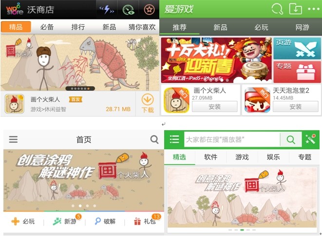 由Hitcents上海公司开发、拓维信息公司中国大陆地区代理的《画个火柴人》,是一款可进行天马行空创意、老少皆宜的涂鸦冒险休闲手机游戏,这款游戏已于1月9日在国内各大安卓市场正式重磅上线。