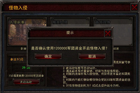 《封魔》中的怪物入侵系统限定了副本通关时间,开启后半小时内倒计时,军团需要在限定时间内打倒所有怪物,否则会有惩罚,开启活动资金将不予返还;而倒计时的最后5分钟,将会显示为红色,提醒玩家们注意节奏。