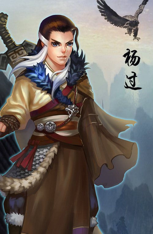 杨过,其人孤傲狂放,叛逆机智,感情丰富,满腔热血激愤,又号“西狂”,感情冲动做的事连他自己也难控制。有许多红颜知己,一心只向着自已的师傅小龙女,并结为夫妇;和郭家恩怨难分,数度因误会关系紧张,却始终挺身而出相助他们,解除嫌隙,以和为贵;命运多舛,与小龙女分隔十六年间,随伴亦师亦友的神雕,闯荡江湖,行侠仗义,人称“神雕大侠”。