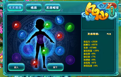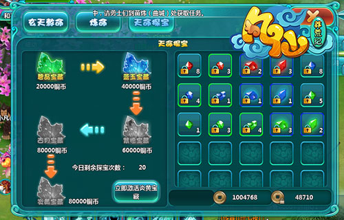 怎样获得宝石呢?击杀副本BOSS、组队诛仙塔地宫都可以得到宝石,不过如果想要快速得到极品宝石的话,最好用的办法还是“天命探宝”!花费一定的铜币,探索天命秘宝,就可以获得各种各样的宝石了。探索不同的宝藏,能获得的宝石也是不一样的,越后面的宝藏越好啦。而探索“炎黄宝藏”不仅可以获得高级宝石,还能获得珍贵的“玄天彩石”哦!玄天彩石可以让你获得特别的增益效果,居家旅行、杀人越货之备必良品有木有!赶紧来神秘的“炎黄宝藏”一探究竟吧~