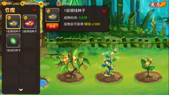 要在农场里收获资源,需要先有种子可以种植,种子可以通过在线奖励、打副本等方式来获取,每日在线一定时长可获得种子奖励,在副本中首次通关或挂机也能获得种子奖励。种子每隔一段时间,即可完成一次,囧友们可要即时去农场收获劳动所得。
