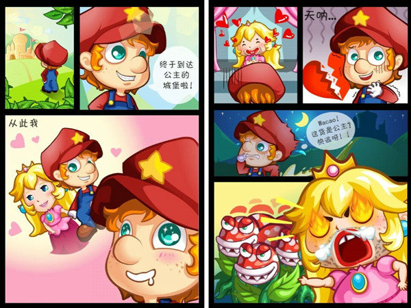 《挖草》的故事也延续至《超级玛丽》,但更为风趣幽默,当马里奥遭遇星爷电影中的“如花”一般的公主之后,厄运连连,只有不断挖草,才能躲避公主。接地气的恶搞内容,能够让玩家在游戏之中还能会心一笑,缓解学习和上班的压力,因此备受学生和白领喜爱。