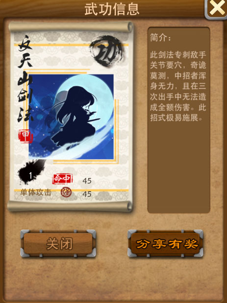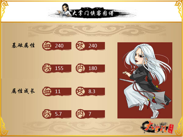 在武侠小说中白发魔女武艺高强,江湖人无不闻之而色变。在《大掌门》游戏中,白发魔女为甲级弟子,其天赋武功“反天山剑法”触发机率极高,造成伤害的同时还能大幅消弱敌人的伤害,让敌人瞬间残废,凶残至霸一时无可匹敌。
