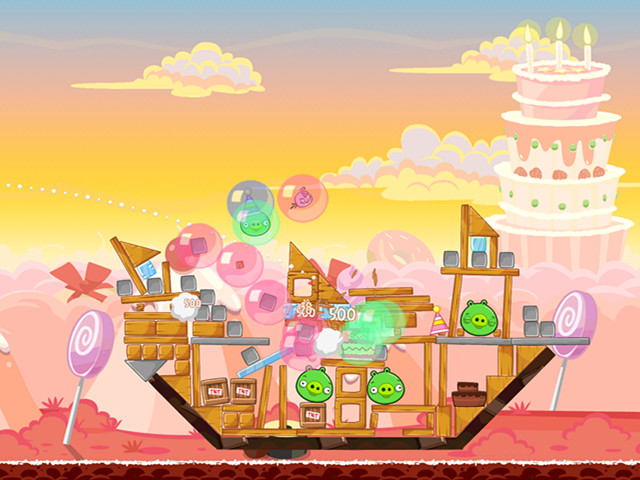 《愤怒的小鸟(中文)》中登场的粉色小鸟具有双重杀伤力,如果泡泡包裹住绿猪,当坠落时绿猪必死无疑,另外,泡泡包裹住的物体在坠落时也可以将其下方的绿猪砸死。因此这只粉鸟非常适合对付那些埋的比较深的绿猪。
