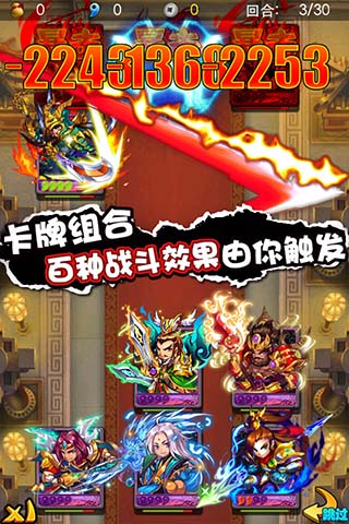 国内顶级原画设计师全程打造的《放开那三国》,无论从卡牌设计还是人物形象来看,都堪称国内一流水平。战斗画面的处理更是运用多维度粒子效果,使打斗感更强画面更炫更精致。Q版风格的人物设定,让你身临其境的化身萌神,体验卡哇伊的最终极形态!