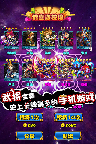 卡牌游戏的收集养成与RPG游戏的乐趣相结合,是《放开那三国》游戏系统中的一大亮点。游戏将卡牌与主角人物相结合,形成自有的独特阵容系统!创新的模式让玩家可以定向培养武将,使自己的角色成为游戏中傲视群雄的霸者!
