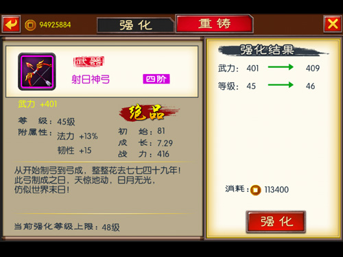 装备的强大,在于品质和等级的提升,玩家可根据众神的个人特色和缘分自由搭配。