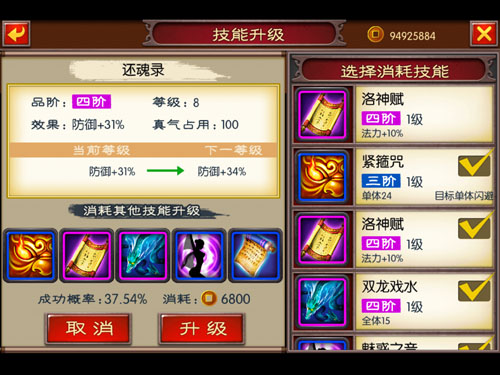 心法的选择,在于众神担当的职务和玩家的个人需求,比如阵首就需要加防御、加血的心法,阵尾则需要武力或内力的心法。