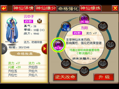 《神仙也疯狂》众神的个人能力是否强大体现在装备、心法、缘分、阵法、命格、修炼等6个方面。