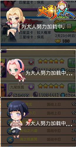 多亏了小编我眼尖,看到了Loading页面增加了几个卡通形象,现在有小樱、雏田和纲手,小樱和纲手的【哔---】还会抖动的哦!话说火影动漫中,小樱有【哔---】的吗…