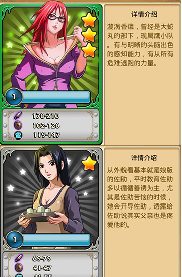 很多忍者卡牌的美术都进行了重画,变得更加的精美,其中还有不少亮点…漩涡香磷就有两个亮点…喂喂喂,话说佐助他妈干嘛也要这么汹涌啊,还有这简介的吐槽也略显犀利了吧!我只能说,好样的,期待多一些亮点图的出现!