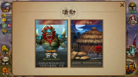 4.新增世界boss支持功能,在世界boss活动开始前10分钟开放;