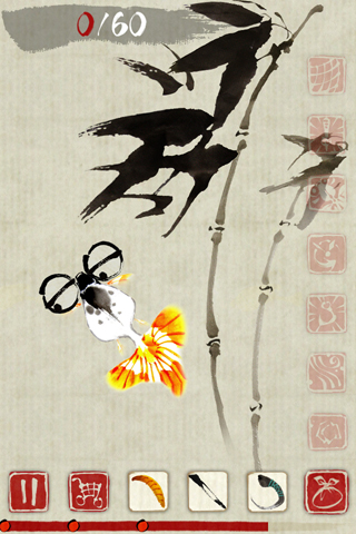 游戏玩法新颖,模式多样,操作方式不拘泥于一尘不变的老套路,很好的融合了手机的陀螺仪和触摸屏功能,游戏模式轻松平和,又不时会给玩家带来惊喜与刺激。唯美的国画意境配合上舒缓动听的音乐,将会给玩家带来轻松愉悦的心情与独特的视觉享受。