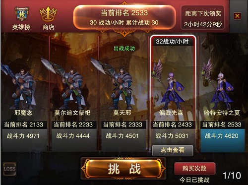 对于喜欢单挑的玩家来说,竞技场就最好的展示自己的舞台。《神鬼幻想》竞技场每天为玩家准备了10场挑战机会,挑战排行榜中的玩家,提升自己的排名。同时还能获得经验值、勋章等大量的奖励。如果连胜10场及以上的话,还能让全服玩家看到你的战绩!成为众人瞩目的焦点。赶紧发起挑战,登顶竞技场排行榜,征服幻想世界吧!