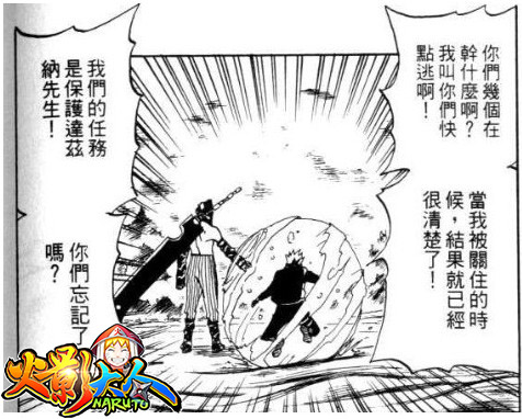天天在被鬼鲛用水牢之术困住的时候差点溺死,而卡卡西在再不斩的水牢中却能够交谈自如,除了上图说的话,他还把再不斩的个人介绍完整的说了一遍。小编认为,一定是卡卡西的口罩有防水供氧的功能!跪求《火影大人》研发团队出个“卡卡西的面罩”的防具装备啊,为了更真实的贴切原著,4星级就好了!