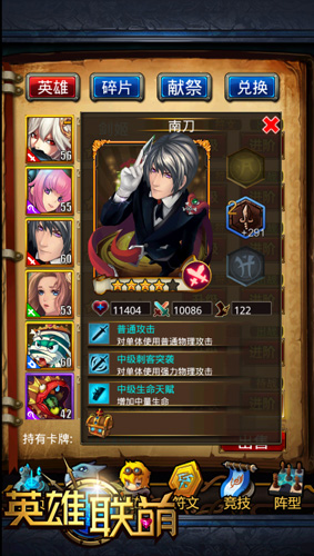 听说新版本好像还有新的金卡英雄要上,也不知道是不是真的,不过可千万不要出现南刀这种小白脸来跟我抢妹子啊!这南刀一看就是个花痴妹子韩剧看多了画的吧,这种西装领带棱角分明的造型意思是让屌丝跪舔滚粗吗?最牛逼的是还比个剪刀手,卧槽比剪刀手的意思是说他能连着来两次呢,还是调戏我等屌丝太二呢?还给镀金,金卡!花痴美术你这是要把其他妹子卡打包送给他的节奏吧?