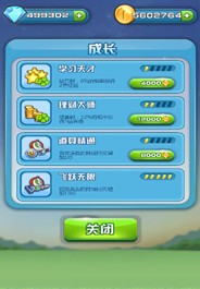 多:游戏中成长技能、宠物技能多多。用户可以用金币来提升成长技能的等级,金币获得的成就能够换取钻石,钻石能够帮宠物升级技能,越来越多的技能,将帮助玩家jump的更高。