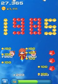 波:关卡内的分数或金币以一定的波数呈现,即金币组合成一个形状波纹。如果把形状内的所有金币或分数全部吃掉(全部拾取),就会获得一个通吃奖励,奖励额外一定数量的分数。