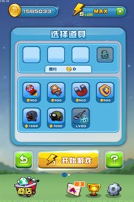 依:游戏中有着各种各样的道具,指火箭、磁铁、弹力鞋、防护罩、铁球、反磁铁。其中,火箭、磁铁、弹力鞋、防火罩是有益道具,铁球、反磁铁是有害道具。人物拾取到道具后会获得一个持续有限时间的状态。依靠着这些道具,你将可以飞的更高!!!