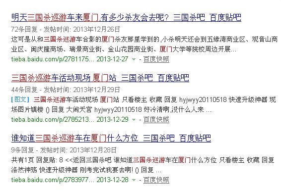 三国杀贴吧厦门活动站相关帖子十分火爆