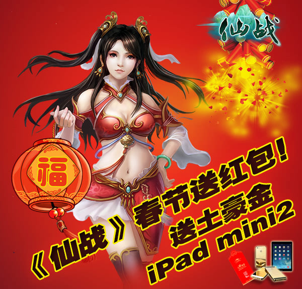 导 读: | 万马奔腾迎春到,《仙战》春节送红包!中国首款吉尼斯世界纪录认证手游《仙战》马年春节系列活动今日开启,总价值100万奖品已经准备就绪,土豪金、iPad mini2、马尔代夫7日游等超 |