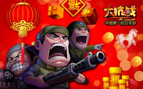 马年祝福到,红包满天飞!中国第一抗日手游《大抗战》为玩家奉上百万新春红包,预祝玩家马年大吉!领红包,拿金将,新的一年马上杀鬼子!