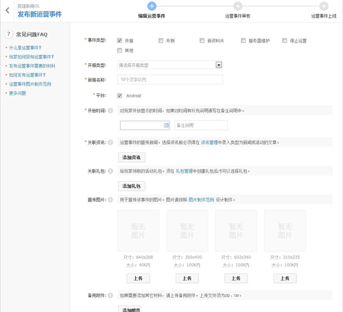 1、后台资源:UC为运营商开放部分后台,运营商可以在这更新产品的开服信息、新资料片等,根据运营计划提交运营事件,发布之后会在渠道对应的展示位显示产品推荐信息。有资源就不要忘记用,渠道上的曝光对产品非常有用。