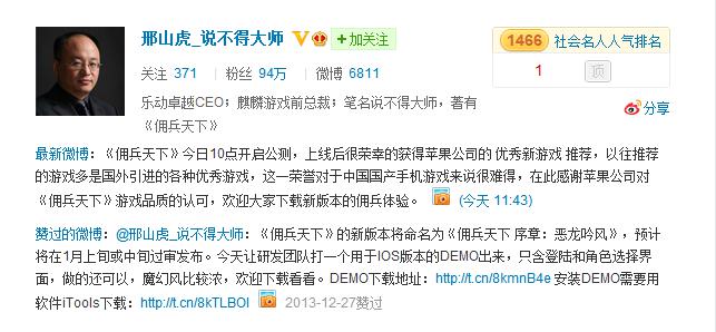 对于《佣兵天下》此次获苹果官方大力推荐,卓越游戏CEO邢山虎也发微博表示感叹道“以往推荐的游戏多是国外引进的各种优秀游戏,这一荣誉对于中国国产手机游戏来说很难得”。而在小编看来,此次《佣兵天下》被苹果认可,不仅代表了当下国内最顶级手游研发水平和与全球研发水平的接近,更为“同质化严重”的国内手游市场做出了杰出表率。