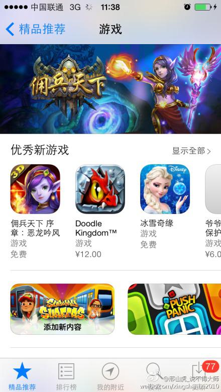卓越游戏《佣兵天下》获苹果推荐 艳羡国内手游