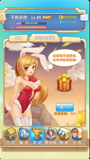 除了纯爱系的恋爱养成,《爱妹大作战》里广受欢迎的邪恶环节也不会少。每天游戏里的兔女郎都会等待着主人的光临,给寂寞难耐的她一个深吻和主人温柔的疼爱!获得这些你并不需要花费任何金钱,更能获得兔女郎为你精心准备的极品礼物!在一天的战斗后,妹纸们还会为你准备一杯精心调制的神秘饮料,包涵着她们的爱意,喝下它你能瞬间恢复精力,又能和妹纸们一起大战若干个回合!具体这饮料是用什么做成的想必大家都懂得,这里小编就不多说了~