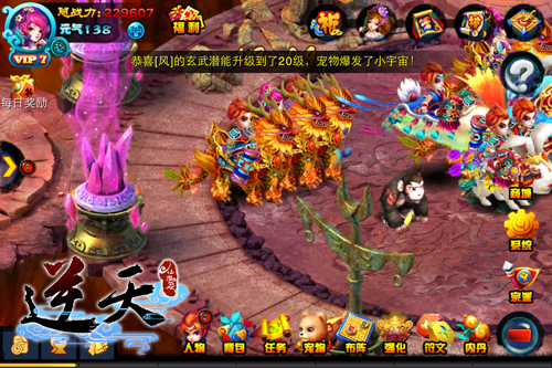 有道是“有人的地方就会有战争”,而团队合作则是战争中的必要因素。《逆天仙魔录》拥有多元的PK交互环境,宗派战,跨服战等,为了荣耀和胜利,对战呼唤更为精良的团队。而这些众多特色玩法之一的“宗派BOSS战”,因其需要高超的作战技法、团队协作能力、完美的阵型,和击杀BOSS带来的炫酷快感,使其成为游戏中广受好评的玩法。
