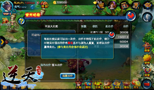 《逆天仙魔录》幸运数字竞猜活动从2月6日开始,至2月10日结束。活动期间,每日11点、15点和23点将定时开放幸运拍卖,每日参与活动的玩家以金钱竞价的形式进行竞猜。活动结束时,出价最低且不与其他参赛者重复的玩家,将赢得本期拍卖奖品。在此提醒玩家,每期活动每个玩家只能竞猜1次哦,所以感兴趣的朋友们千万不要错过机会哦!