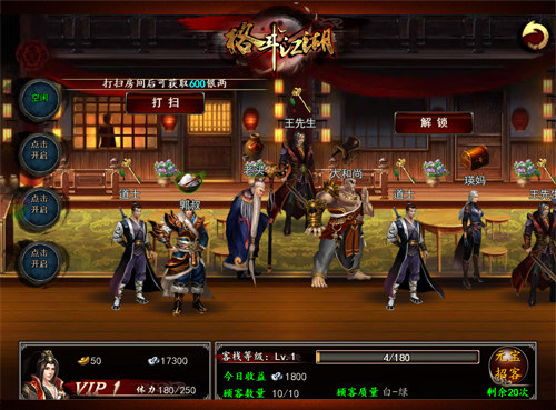 《格斗江湖》中战斗玩法虽然刺激,但别误会这里只是一个打打杀杀的世界哦。在游戏中还有很多休闲玩法,丰富玩家的江湖人生。小编最喜欢的就是客栈系统,玩家会免费获得一个属于自己的客栈,要依靠自己的商业智慧,把一个小小的客栈做的有声有色,不用辛苦刷本打怪也能赚到大把银两哦。