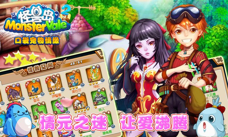 《怪兽岛2 口袋宠物情缘》是一款休闲、养成,基于LBS地理位置的萌宠游戏,号称手游版陌陌、第一约炮手游,在游戏中可以和真实地理位置的玩家互动,一起游戏、彼此诉衷肠!值此情人节之际,除了线上奖励金币、萌宠送不停,更有线下奖励价值百元的杜蕾斯爱情套装,让你的爱沸腾!