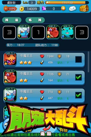 《萌宠大乱斗》用现代现代科技的感受来讲述奇幻世界的唯美故事,用创新打造清新呆萌、轻松有趣的轻手游时代!2014年的“2?14”也是2014年的元宵节,爱情的花朵在这里终于结出硕果!亲爱的“小两口”们不妨来领略一下哦!