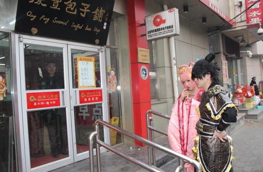 网友在庆丰包子铺门前拍到的COSER食客