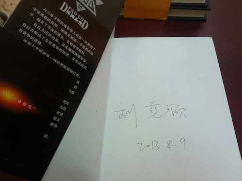 除此之外,从《科幻世界》杂志社桌上摆好的大刘亲笔签名的《三体》丛书来看,这次合作是否与《三体》有关,至今还未有详细说明,后续值得期待。