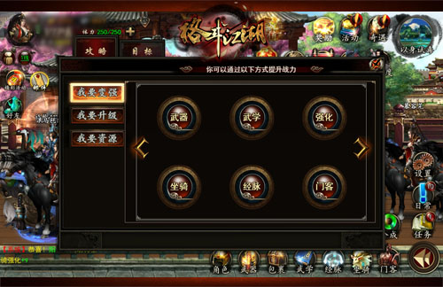 行走江湖,一身功夫最重要,而在《格斗江湖》中评判功夫的标准核心就是战力。但在繁华的江湖世界中,提升战力的途径有很多,小编有时就经常晕头晕脑,老是升了这个忘了那个,忙碌半天跟别人一比,战力还是差一大截!自从有了江湖秘籍——攻略系统后,腰不酸了腿不疼了,一口气上五楼不费力,啊不对,拿错稿子了,应该是提升战力的思路就清晰很多了,所有战力提升途径汇集于此,玩家可以轻松查看自己究竟哪里不足,对症下药,才能全面提升。