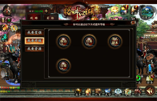 在《格斗江湖》中,玩法非常丰富,副本也很多,但到底那些副本或玩法可以升级,往往让人迷糊,想要冲级的玩家,辛辛苦苦刷了一个副本,发现不是经验副本,那不是悲催了么!不过,有了攻略系统,玩家就可以清楚明白的看到哪些玩法是提供大量经验的,选择这些途径去冲级,保证不做无用功。